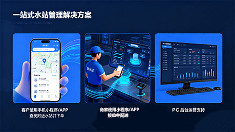 我们提供一站式水站管理解决方案,涵盖客户小程序/APP下单、商家APP接单配送及PC后台运营支持。用户可便捷查找附近水站并完成订购,商家通过智能调度系统高效处理订单,实现全流程数字化管理,助力水站提升服务效率与客户体验。